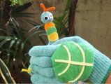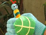 左手の甲でキャベツをつくり、リズムに合わせて右手の親指のあおむしを