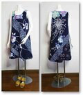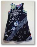 色々な浴衣地をパッチワークし、斜めに配置たAラインのワンピース。