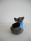 青いリボンが印象的なクマさんの小物入れ