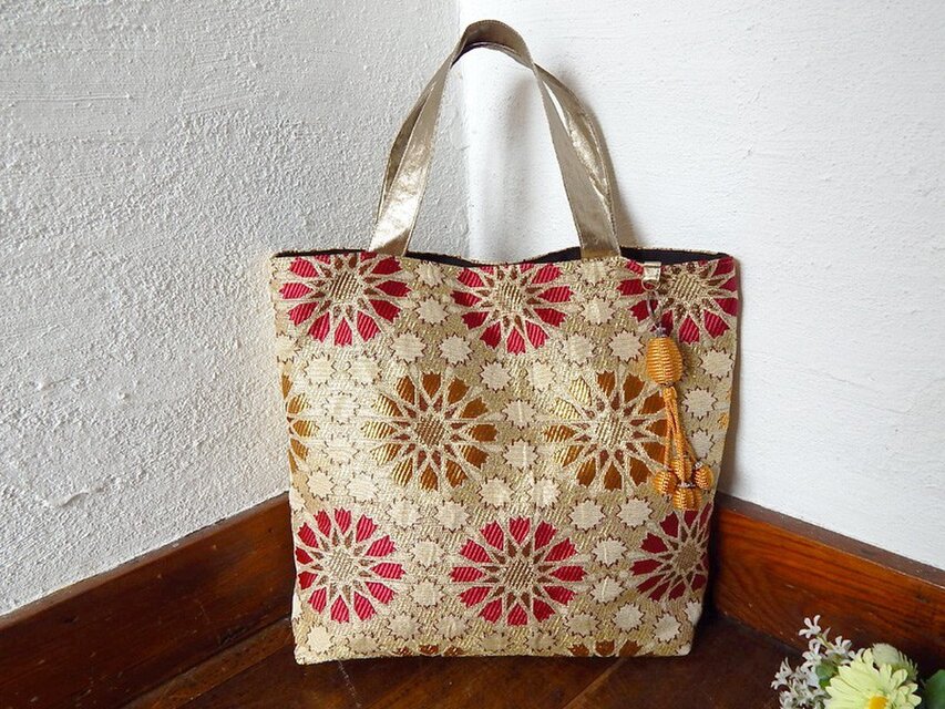 オリエンタルでゴージャスなファブリックを使用した、大人カワイイトートバッグです。