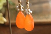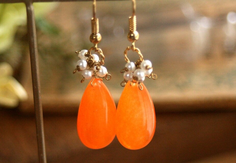 オレンジジェード パール ピアス 誕生日 クリスマス 母の日 プレゼント ギフト シンプル 天然石 パワーストーン 結婚式 披露宴 二次会 春 初夏 夏 開運 ジュエリー アクセサリー カラーストーン ストーン フォーマルアクセ パール 真珠