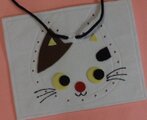 フェルトで作った「ネコのひも通しのおけいこ」です。