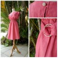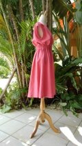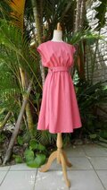 ★送料無料★ プレミアムリネン ワンピース フレンチ袖 膝下丈 ベルト付き やわらかさくらんぼピンク オーダー サイズ直し可