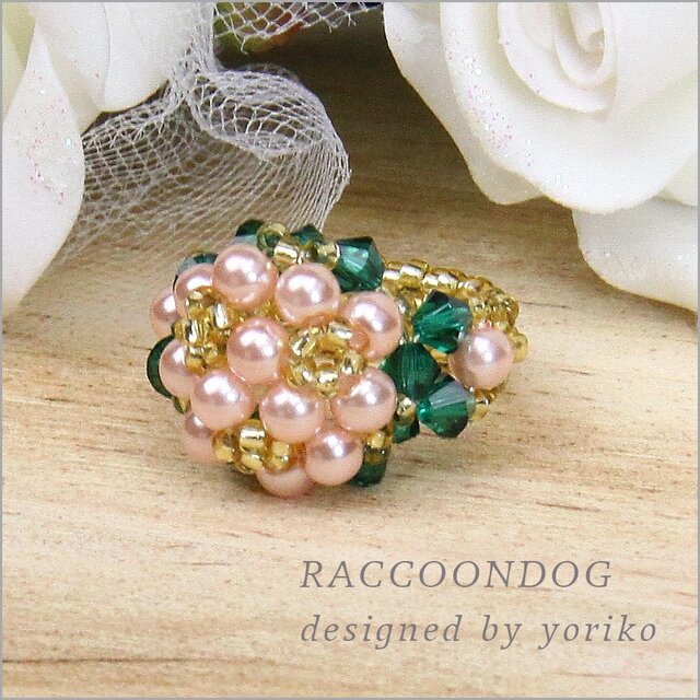 (再販)はんなり桜(パールとスワロフスキーの桜のビーズリング)《ビーズアクセサリー》