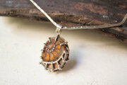 アンモナイト(化石)の模様に合わせてシルバーで石枠を作りました。