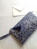 きれいな作品ありがとうございました。布の色に合わせたタッセルがかわいいです。▼フラットポーチは、今使っている8インチのタブレットにぴったりの大きさです。こんなかわいいポーチから、大きなタブレットがでてくる意外性?▼取っ手付きしっかりめポーチは、着物を着たときの小バッグにします。浴衣でも使えますね。