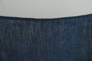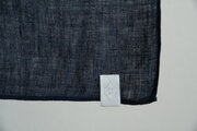 国内で旧式のシャトル織機で織られている生地で、生地幅をそのまま、シャトル織機ならではの生地耳も使っています。裁断箇所の上下2辺のみ、糸も一緒に染まるよう綿糸で三つ巻縫製をしています。生地は通常製作している風呂敷とほぼ同じで、60番手ほどの糸でオーガニックリネン100%、ハンカチや薄手のシャツ地程度です。