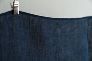 シャトル織機で織った上質なリネン生地に、本藍染で染めています。これ以上ないシンプルな作りですが、素材も染めもストレートに、最上の質と製法で作りました。リネンならではの艶と、本藍染ならではの色。それぞれの良さがしっかり出ていると思います。