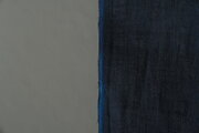 本藍染めは、ただの藍色ではなく、赤や緑など、様々な色が混ざってこの色になると言われています。実際に日光の中で見たり、揺らしたりすると、赤っぽく見えたり、黒っぽく見えたり、紫っぽく見えたりと、豊かな表情を持つ布です。