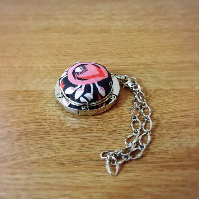 バッグやポーチを机に掛けるハンガーです。飲食店などで荷物置き場がなく、背もたれに置いた、地べたに置いたという経験のある人は多いと思います。バッグの中でなくさないように、スムーズに使えるように、持ち運び中はアクセサリーとして。そんな便利な仕様で製作いたしました。