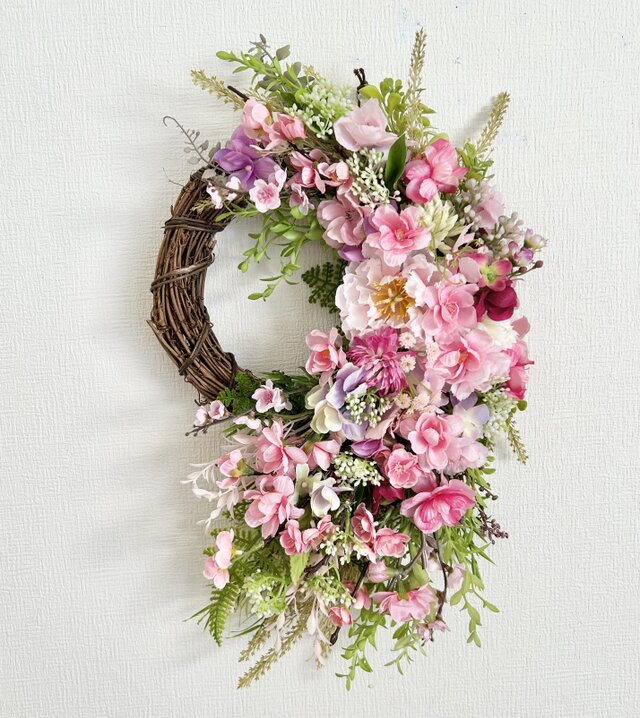 花材:アーティフィシャルフラワー桃の花・ダリア・紫陽花・マム・ベリー・シダー・リーフ
