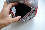 チャック式の小銭入れとその前に2層、後ろに1層のカードやお札などを入れるポケットがついています。