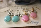 お色違いのピンクカラージェードを使ったピアスやイヤリング、
