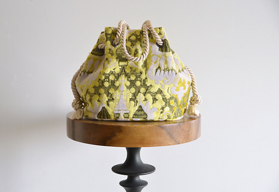 サテンロープの輝きとモケット生地の輝きが