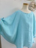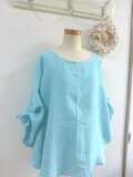 ハードマンズ社リネン100% お袖リボンポンチョチュニック ブラウス フリー