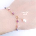 優しいスミレ色のアイオライト、雲母が輝くレピドライト、パールを繋げました♡