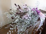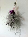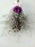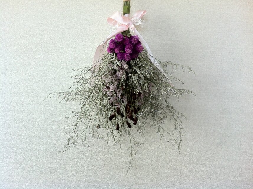 ブルーファンタジア、ハイブリッドスターチス、千日紅、秋色のワレモコウなどをアレンジしたスワッグです。