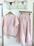 赤系変わりストライプリネン100%でセットアップを作りました。