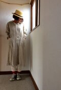黒×キナリのストライプのリネン生地は縦の線をもハッキリとしております、私のサイズにも余裕をももたせており細見え抜群です。何枚も購入させて頂き、ノンストレスとビックポケットのポイントが大人可愛いワンピース。大大大ファンです。美しい縫製にも重ね重ね心遣いに御礼申し上げます。ありがとうございました。