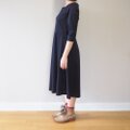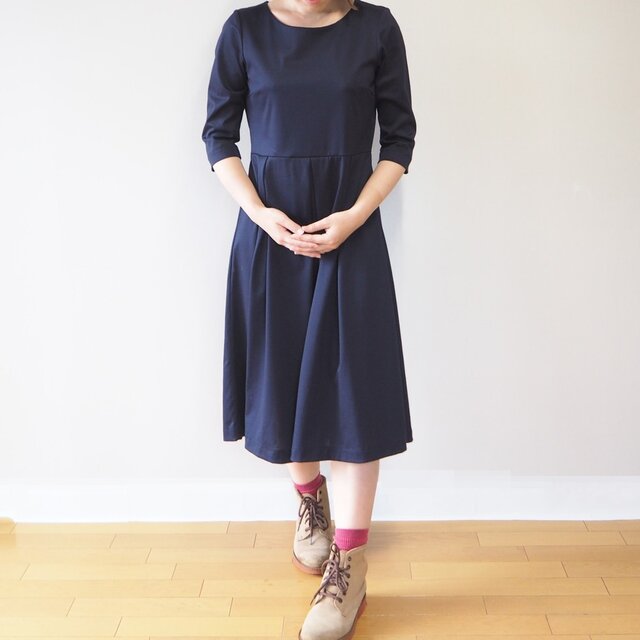 ┗ポケットやファスナー、ボタンなど余計な装飾を一切はぶき、シンプルを極めたワンピースです。その分小物やアクセサリー、着る人を引き立てます。