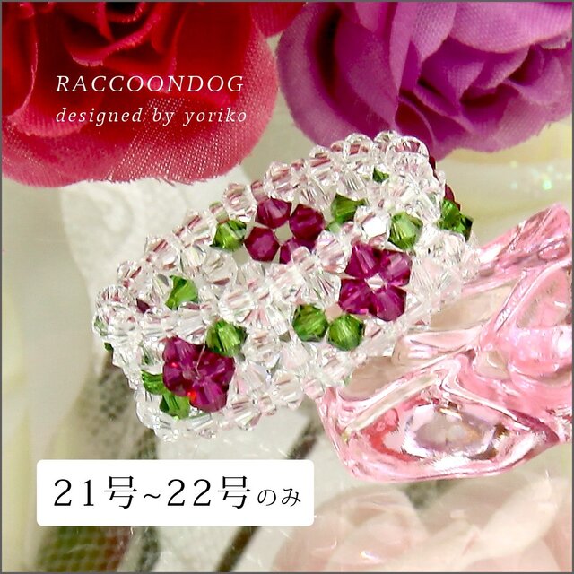 ビーズ,リング,コスチュームジュエリー,スワロフスキー,ビーズアクセサリー,ビーズアクセ,ローズ,キラキラ,ビーズリング,ガラス,大き目リング,プレゼント,贈り物