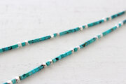 ブルーグリーンが爽やかな天然ターコイズは、直径が約2.5㎜前後のスリムなチューブ型をセレクト。