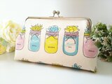 流行りのジャーに植わった多肉植物がとってもかわいいがま口ポーチでございます(^-^)