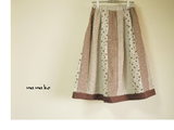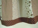 厚地の綿麻生地は、表はベージュ系のパッチワーク風プリントで、裏は水玉模様になっております。