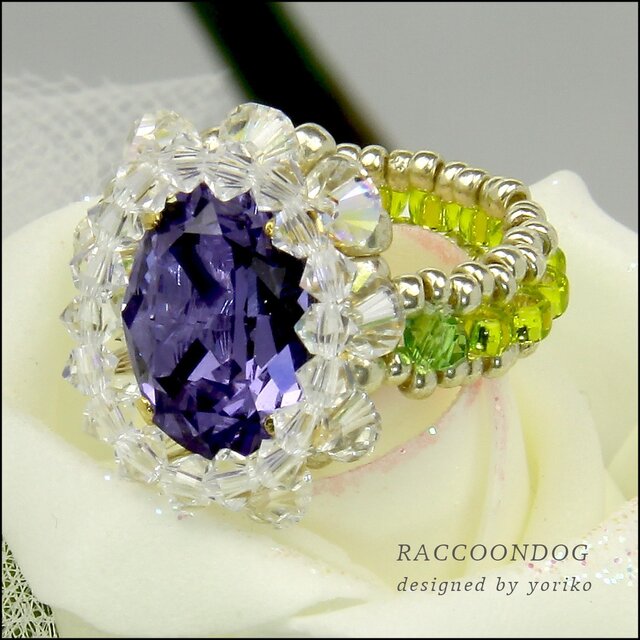 ビーズ,リング,コスチュームジュエリー,ビーズアクセサリー,ビーズアクセ,スワロフスキー,バイオレット,ビーズリング,グリーン,アクセサリー,大粒,キラキラ,スミレ,緑,紫