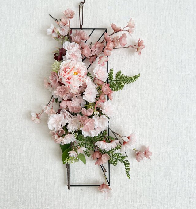花材:アーティフィシャルフラワー桜・ピオニー・ローズ・紫陽花・マム・ベリー・シダー