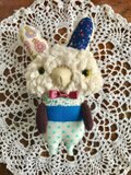 青系の布でパッチワークした体に、蝶ネクタイ。