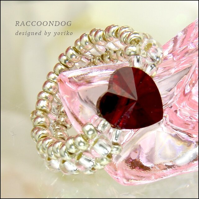ビーズ,リング,コスチュームジュエリー,ビーズアクセサリー,ビーズアクセ,スワロフスキー,ハート,ビーズリング,赤,アクセサリー,レッド,ピンキーリング,ハートリング