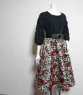 133バラ柄レトロ銘仙リメイクスギャザーフレアカート