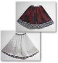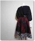 黒地に赤い大きな花柄の呂とダイヤ柄の銘仙から作ったギャザーフレアスカート。