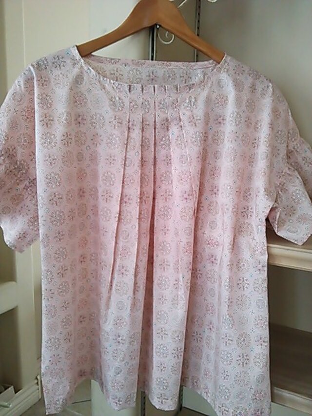 胸元にタック、袖にふんわりギャザーがはいった、大人っぽいけれど可愛いブラウス。