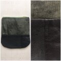 ヴィンテージのカットソーを墨黒にムラ染めし、ファブリック状にしたもので作成したポーチ。