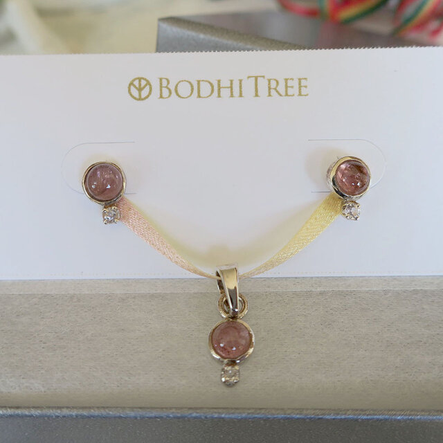 トルマリン+トパーズ ペンダント&ピアス セット ピンク ギフト対応 10月誕生石 天然石ジュエリー