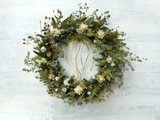 今回も素敵な作品をありがとうございます。大人っぽくて上品な色合いに一目惚れしました! 以前お迎えした薔薇のリースもとても素敵で色褪せるまで飾り続けていたのですが、今回のリースも日に何度も眺めてしまうほど素敵でうっとりしてしまいます。定位置の寝室に飾っています☆