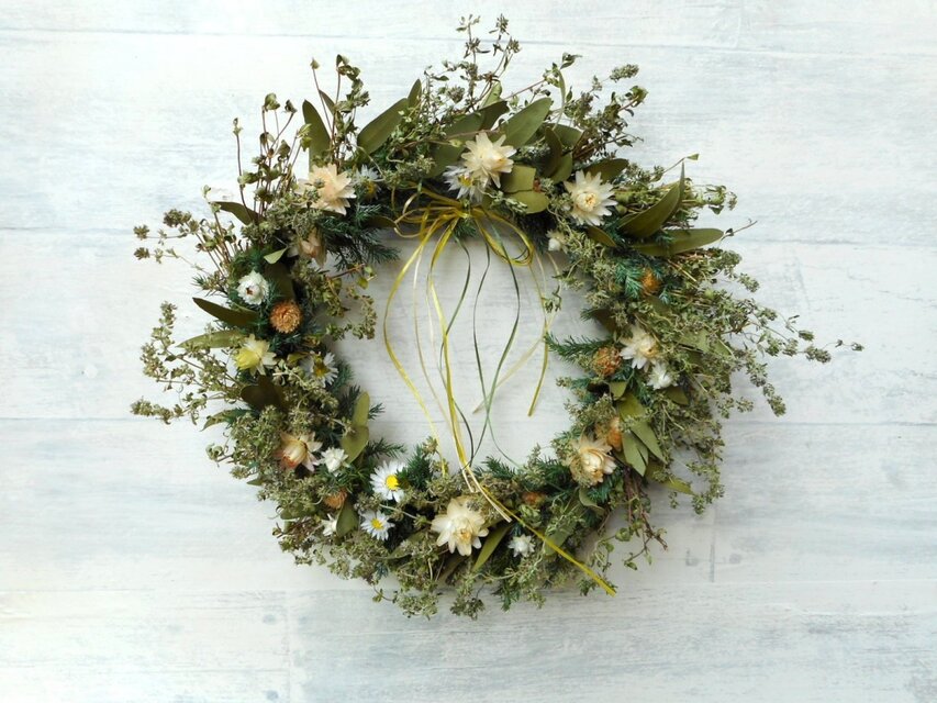 独特の雰囲気をもった姿になります。ユーカリと合わせてそのタイムのリースを作りました。