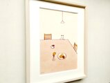 乳白色のアッシュ材のフレームが、シンプルで余白の多い絵とマッチして優しい印象となっています。