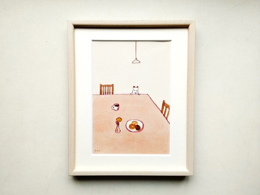 特集掲載作品*原画「おやつの時間 / snack time」 ※木製額縁入り