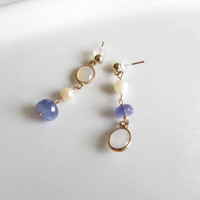 宝石質のタンザナイトで、大人かわいいピアスをお作りしました。