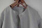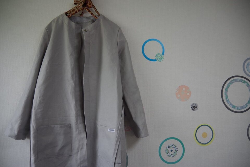 上品なお色味のリネン生地でノーカラーのコートを制作いたしました。