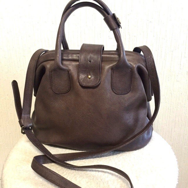 ドクターズバックのようながばっと開くがまぐちバックで真鍮のギボシ留めでさらに安心です。
