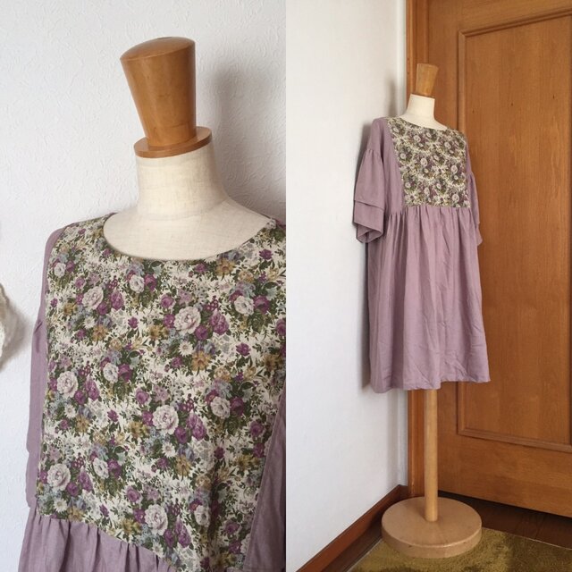 ☆yuwaさんの薔薇柄ハーフリネンと薄紫の様なピンクの様なとても綺麗なアンティークモーヴリネン100%生地になります。