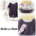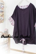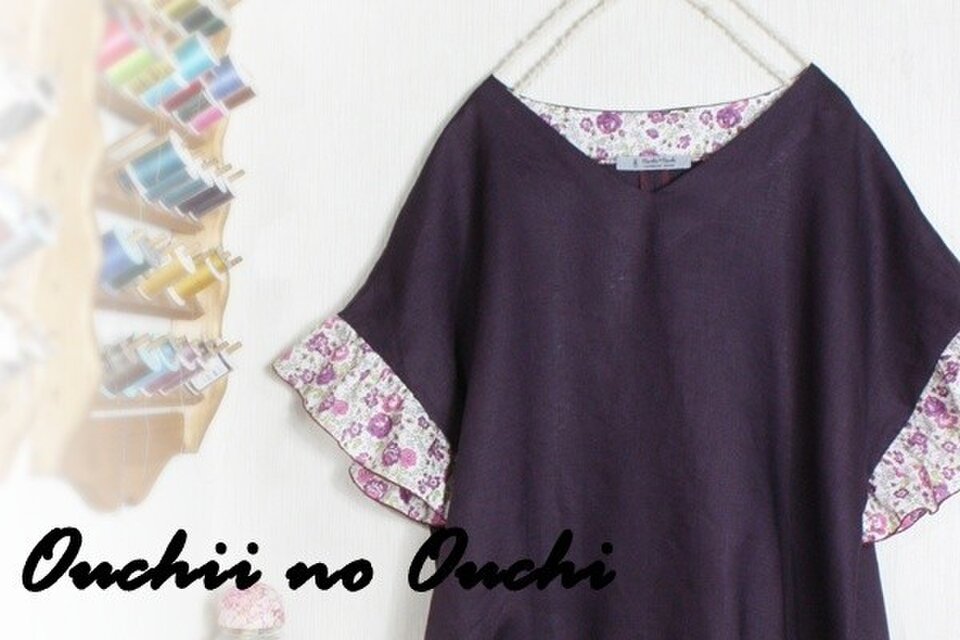 リネン100グレープとリバティタナローン定番大人気柄Felicite フェリシテピンク&パープルで巻きロックフリル袖のドロストブラウスをおつくりしました。