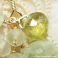 素材:宝石質プレナイトAAA ドロップブリオレットカット、宝石質ペリドットAAA マロンブリオレットカット、プレナイトAAA ボタンカット、その他全て14kgf