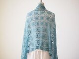 優しい色合いと繊細なデイジーモチーフの素敵な作品でした。 絶妙なデザインの袖が腕をほっそり見せてくれるのも素晴らしいです。手編みはやはりとても着心地がいいですね。