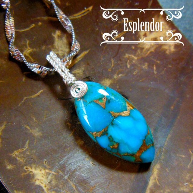 こちらは、マリンブルーが美しい、海を思わせるブルーカッパーターコイズのペンダントです♪
