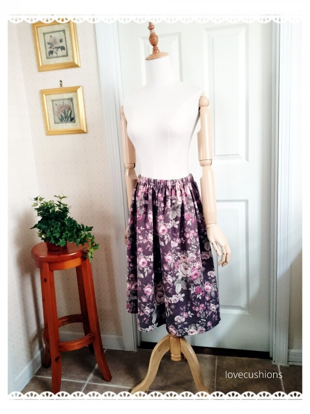 ♥秋から活躍してくれる、女性らしい花柄のギャザースカートを作りました♪